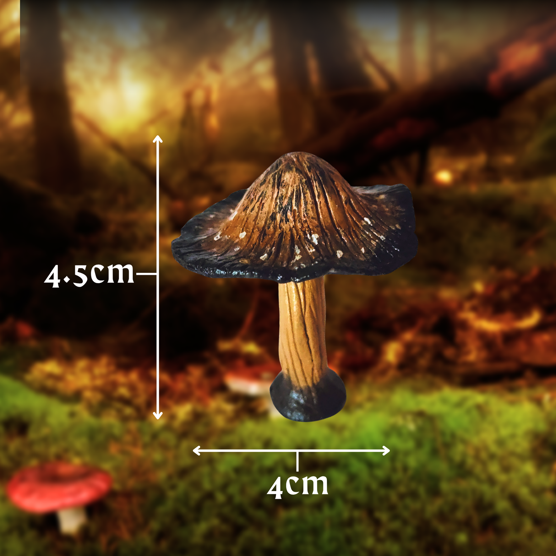 Hand-sculpted with earthy tones and deep, moody blacks, these Swamp Shrooms bring a shadowy kind of magic to your fairy garden or shelf. Whether nestled in moss or standing tall among pebbles, they add a hint of enchanted mystery.